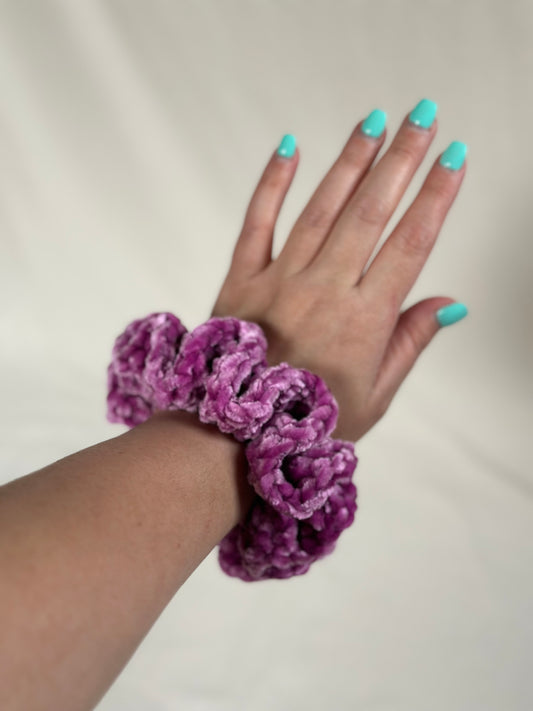 Fuchsia Velvet Crochet Scrunchie