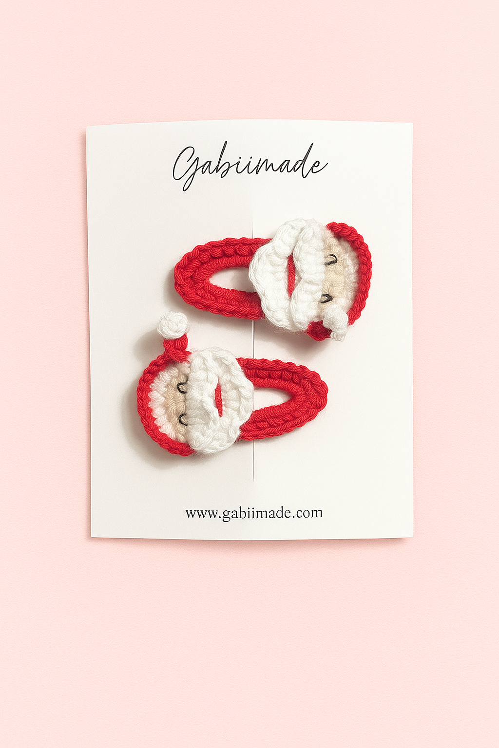 These handmade crochet hair clips add a festive touch to any holiday outfit. Each purchase includes one clip, making it easy to add some holiday cheer to your hair. Made with expert craftsmanship, these clips are a unique and stylish accessory for any Christmas celebration.